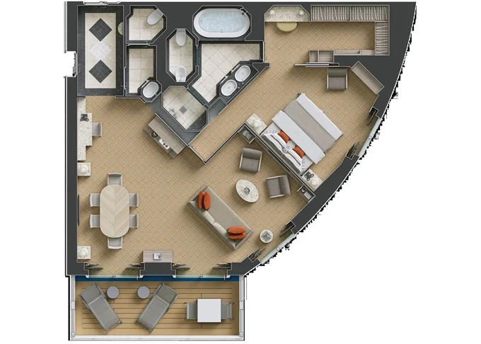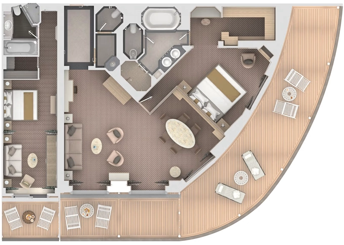 | R1 - Royal Suite 1 105 m² (vrátane balkónu). 7. paluba vpredu. Max 3 osoby. | 23 600 € 23 600 € za osobu |