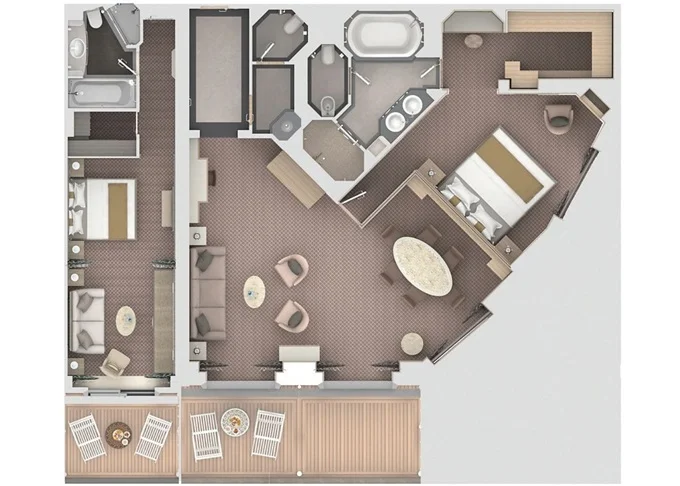 | S2 - Silver Suite 2 92 m² + 12 m². Silver Suite SL spojená s Panorama Suite PA. 9,10,11. paluba. Max 5 osôb. | 44 800 € 44 800 € za osobu |